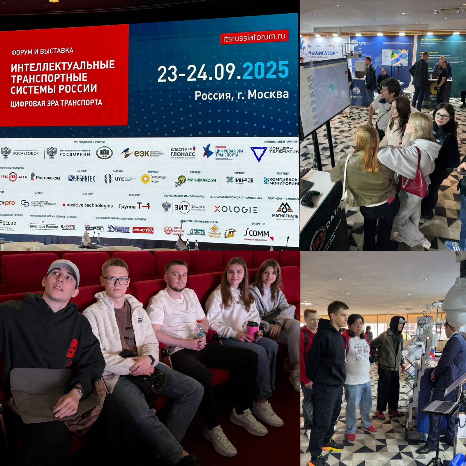 Студенты групп УМЛ-311 и УМЛ-312 под руководством доцента кафедры ЛиУТС Екатерины Гоголиной посетили форум и выставку «Интеллектуальные транспортные системы России» 23–24 сентября в Москве.