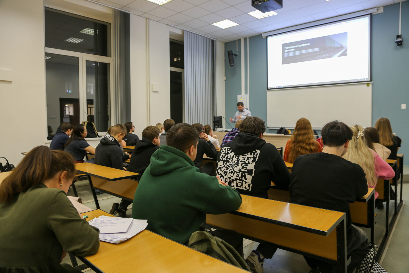 Алексей рассказал студентам о мобильном приложении Личного кабинета в сфере грузовых перевозок ОАО «РЖД» (РЖД-ГРУЗ 2.0). Мобильное приложение включает весь спектр услуг и документов для оформления и сопровождения грузоперевозки. В приложении доступно оформление подписание перевозочных документов, получение информации и справок по грузоперевозке.